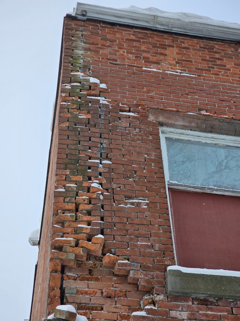 For this critical intervention, Sinitski Structural Engineering Ltd. was retained to conduct an emergency structural assessment of a heritage commercial building in North Stormont experiencing active structural distress. The site review revealed a high-risk failure of the load-bearing exterior masonry, with the rear wall exhibiting significant inward bowing and a loss of lateral stability. SSEL’s rapid response provided the owners with a vital technical roadmap to stabilize the structure and mitigate the immediate threat of a partial collapse.