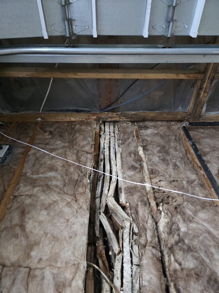 • Substructure Decay: Investigations within the basement uncovered severe rot and decay in the timber joists and corner posts due to long-term moisture exposure. SSEL specified a “sistering” reinforcement strategy and the installation of new structural posts to restore the building’s primary vertical load path.