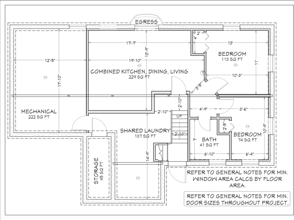 • Life Safety & Egress: A critical component of the SDU conversion was the design of oversized egress windows and fire-rated assemblies. SSEL’s schematics ensured that the unit meets all municipal fire separation and emergency exit requirements, providing peace of mind for both the owners and future tenants.